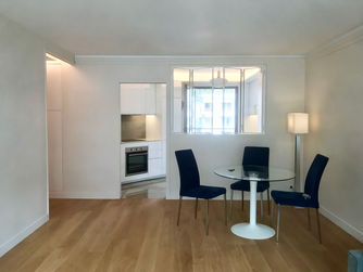 L'appartement est destiné à un célibataire. Il est dans son jus, assez vieillot, mais dispose d'une double orientation à valoriser. L'objectif est bien sût de le moderniser mais aussi de créer un bureau/chambre d'amis ainsi qu'une cuisine partiellement ouverte sur la pièce à vivre.